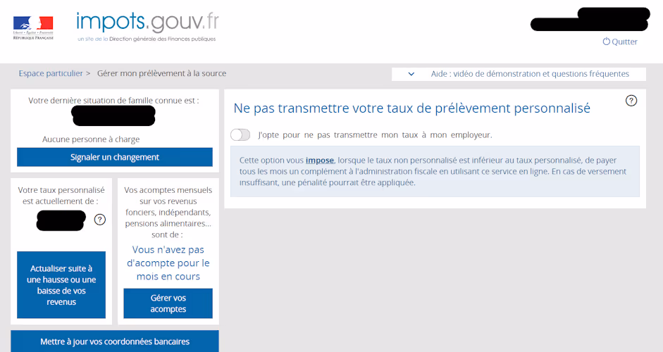 Gérer son taux de prélèvement à la source