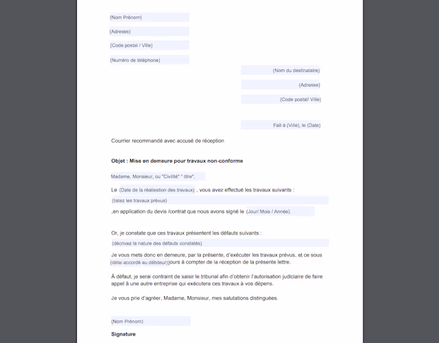 Comment rédiger une mise en demeure pour travaux non-conformes?