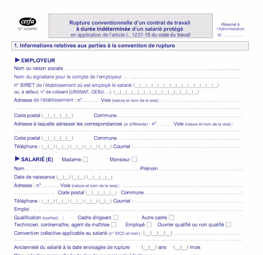 Cerfa : rupture conventionnelle d'un salarié protégé