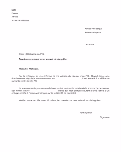 - Pour demander la clôture de votre PEL, il suffit d'en faire la demande auprès de votre banque, par lettre recommandée avec accusé de réception.