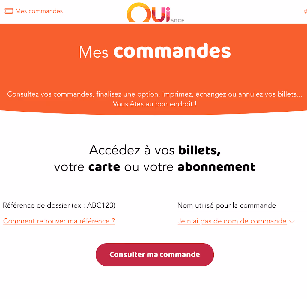 🚆 Si vous souhaitez effectuer un échange ou un remboursement de votre billet de train, il faut se rendre sur la rubrique « Mes commandes » du site Oui.sncf :