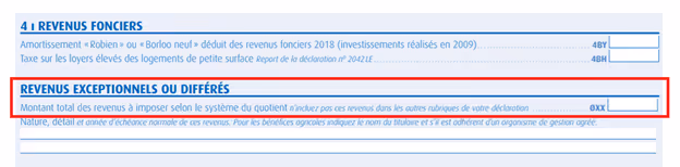 Si vous choisissez le système quotient, les sommes imposables doivent être inscrites dans la case 0XX de la déclaration annexe 2042C.