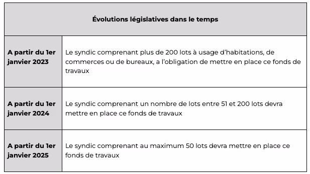 Par ailleurs, le syndic ouvre un compte bancaire spécifiquement pour la gestion de ce fonds de travaux sur lequel sont versées les cotisations.