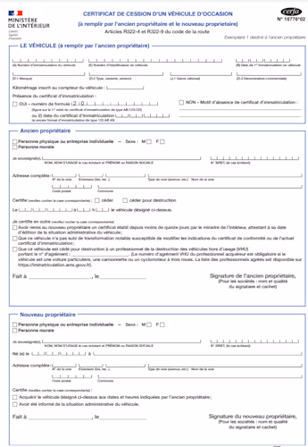 - Lors de la vente d'une voiture, vous pouvez avoir recours au certificat cerfa de cession d'un véhicule d'occasion.