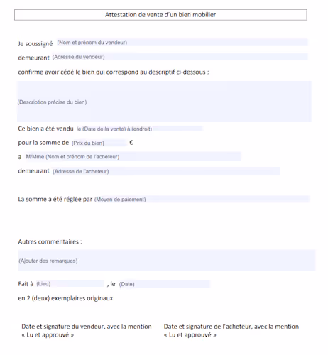 🔦 Au-delà d'un titre de propriété, l'attestation de vente peut également être utilisée pour justifier la transaction auprès d'un tiers. Par exemple: une assurance, l'administration fiscale, une personne extérieure à la vente …