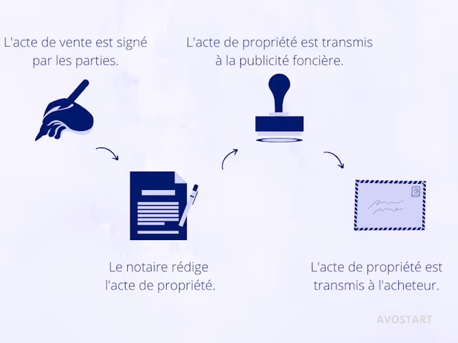 - Le notaire rédige ensuite l'acte de propriété.