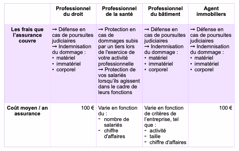 Voici une liste d'xemples de secteurs d’activités qui ont l’obligation de souscrire à l’assurance RC pro :