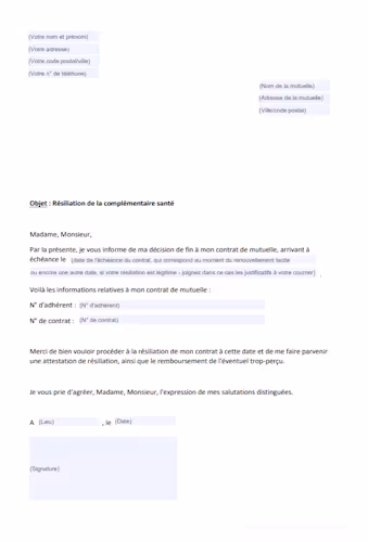 - Vous pouvez résilier votre mutuelle, ou complémentaire santé, par l'envoi d'un courrier en recommandé avec accusé de réception.