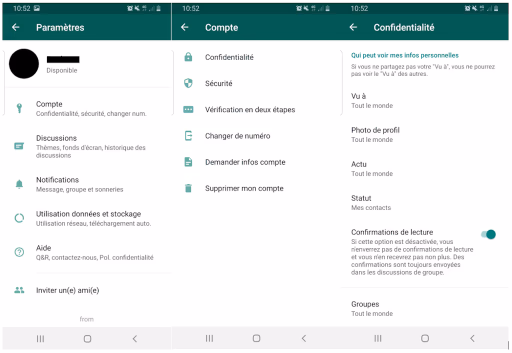 - vous pouvez ensuite déterminer qui peut voir vos informations personnelles sur Whatsapp.